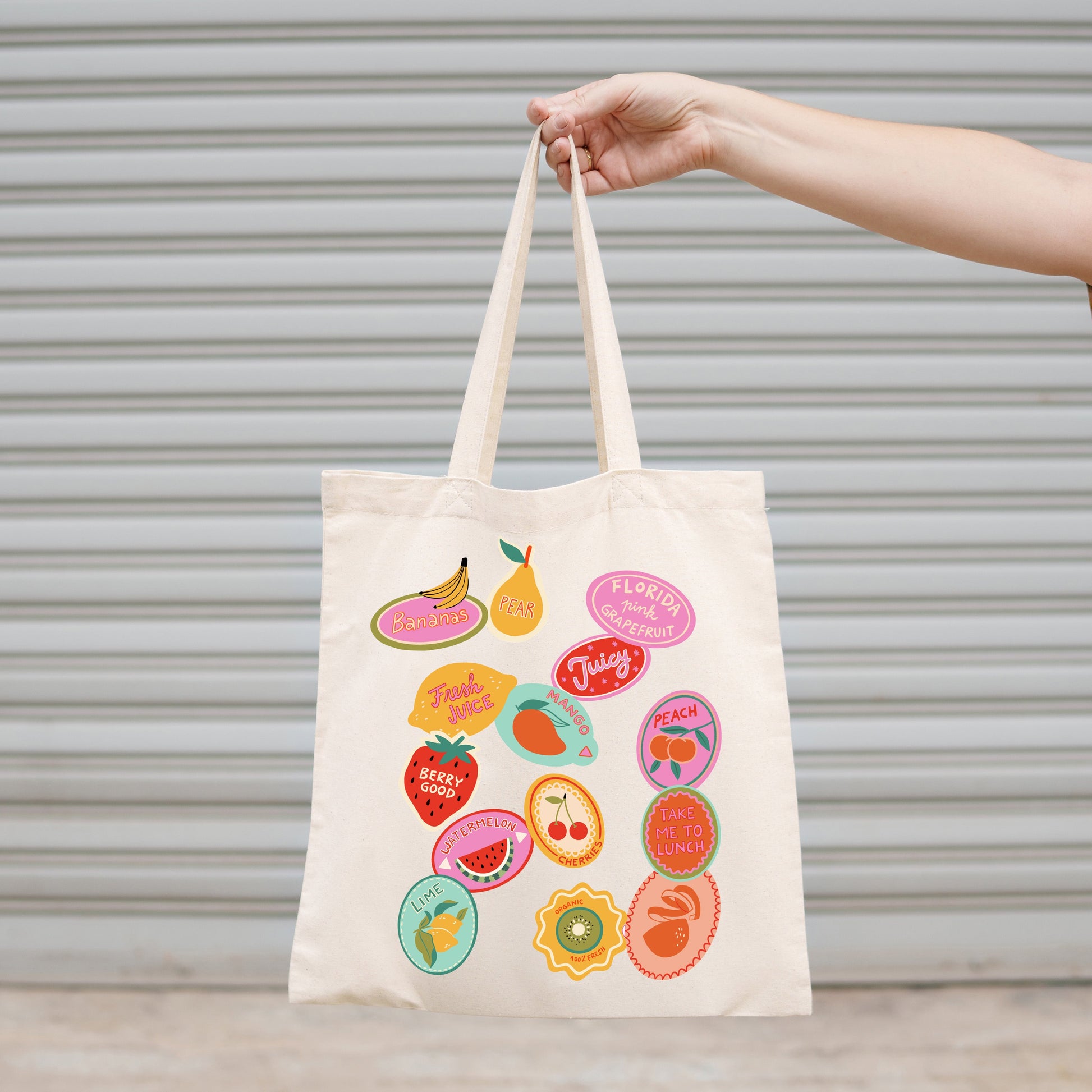 Canvas Tote Bag, Colorful Fruit Stickers