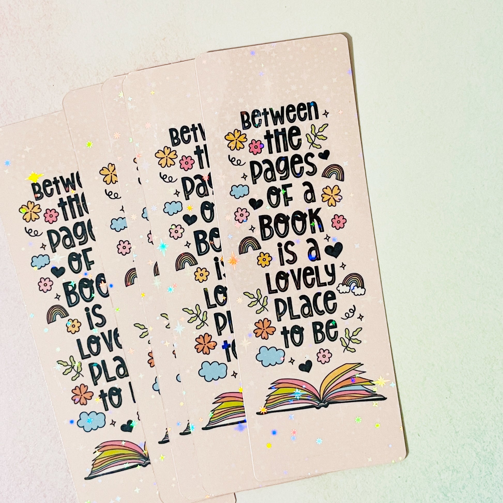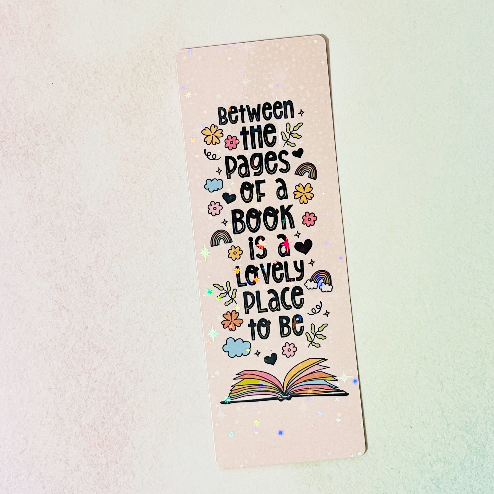 Holographic Laminated bookmark with rounded corners. Each bookmark is approximately 6"x2" and has a matching single colored back, image is on one side.