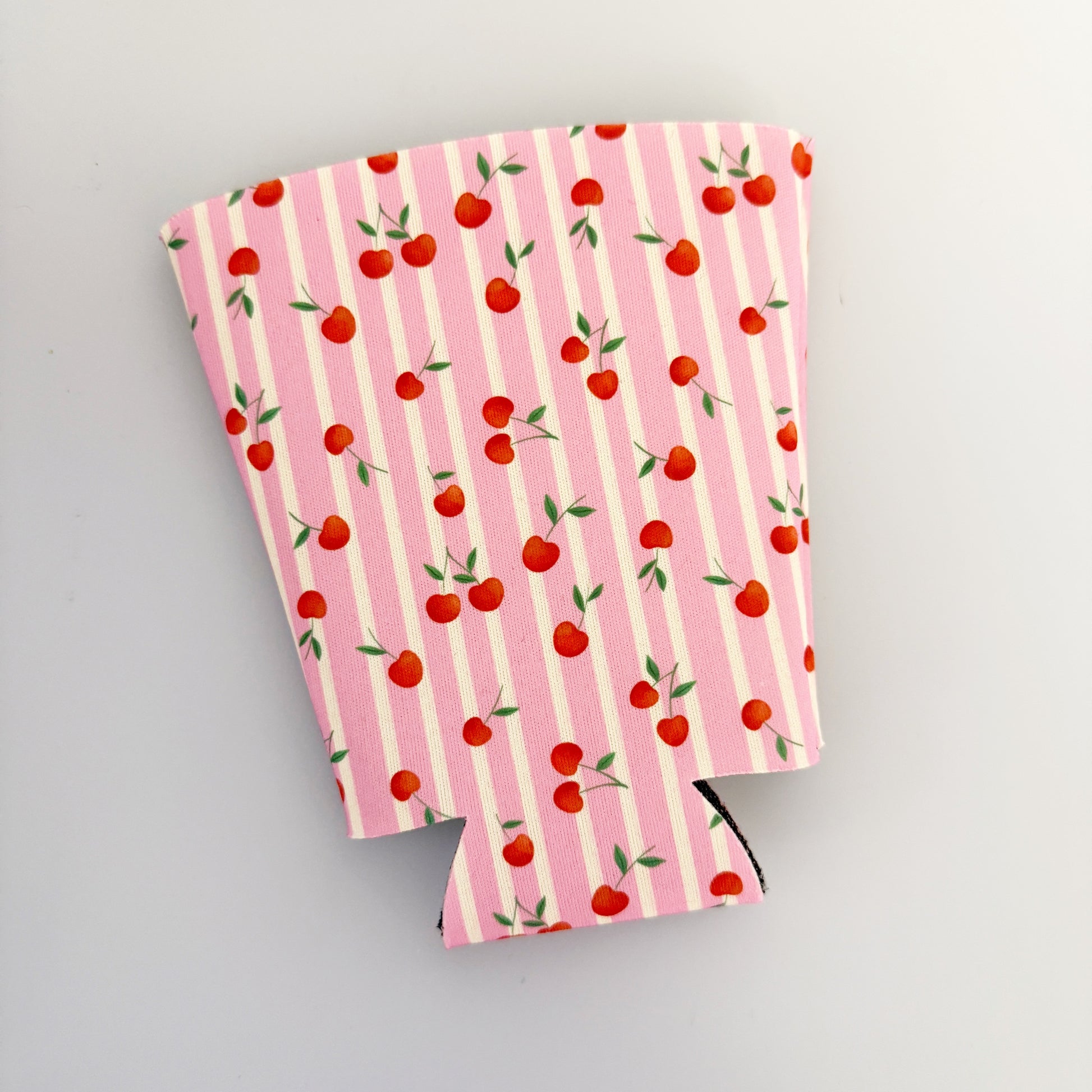Iced Coffee Sleeve, Pink Stripe Cherries