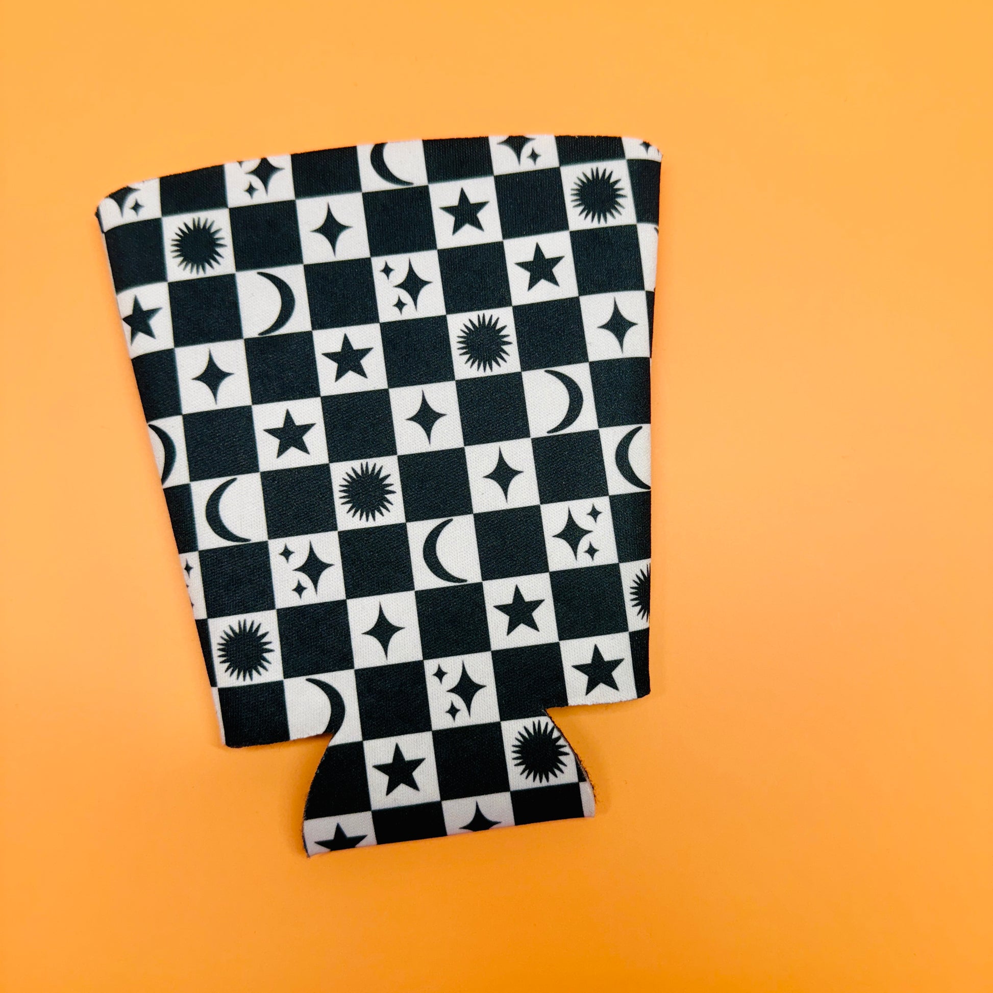 Iced Coffee Sleeve, Black Sun and Moon Check Pattern