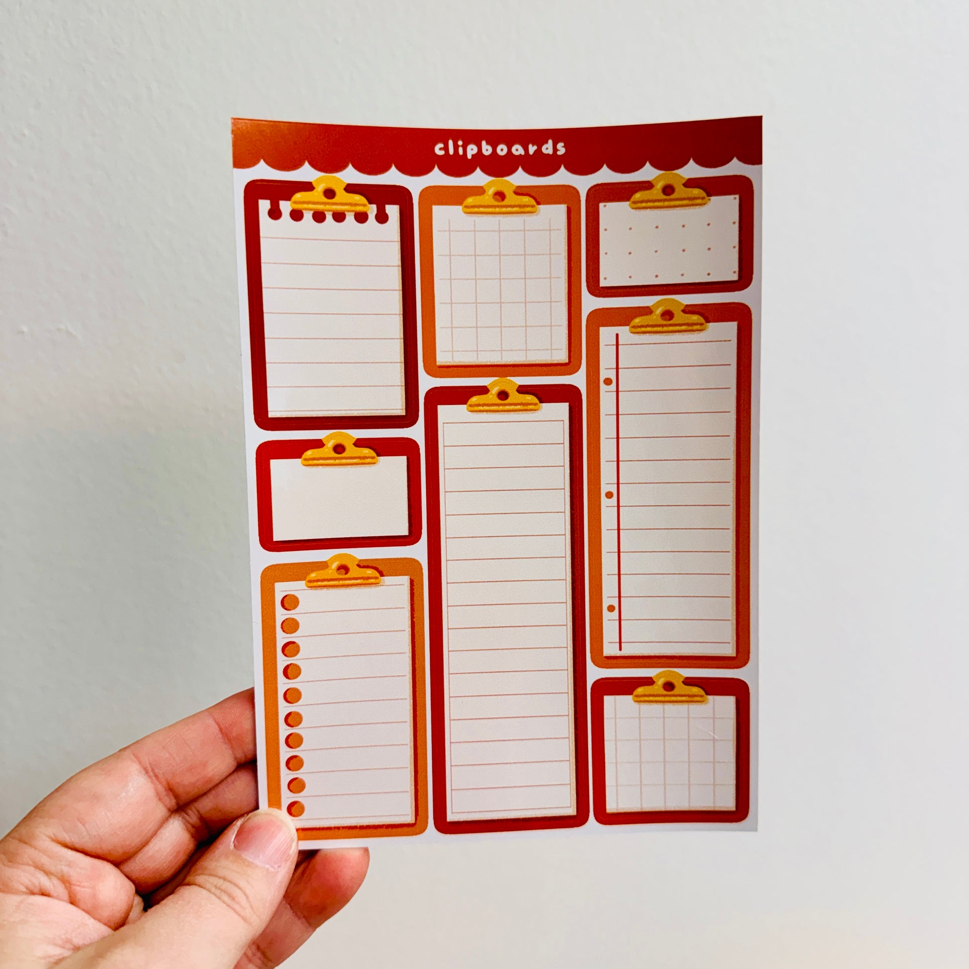 Organize and decorate with this functional clipboard sticker sheet. Each design features a clipboard holding blank paper, ready for your own writing. Perfect for junk journals, scrapbooking, and mixed-media projects, these stickers let you create custom to-do lists, labels, and notes directly on the design. Stick them anywhere to add a practical, creative touch to your pages and projects.