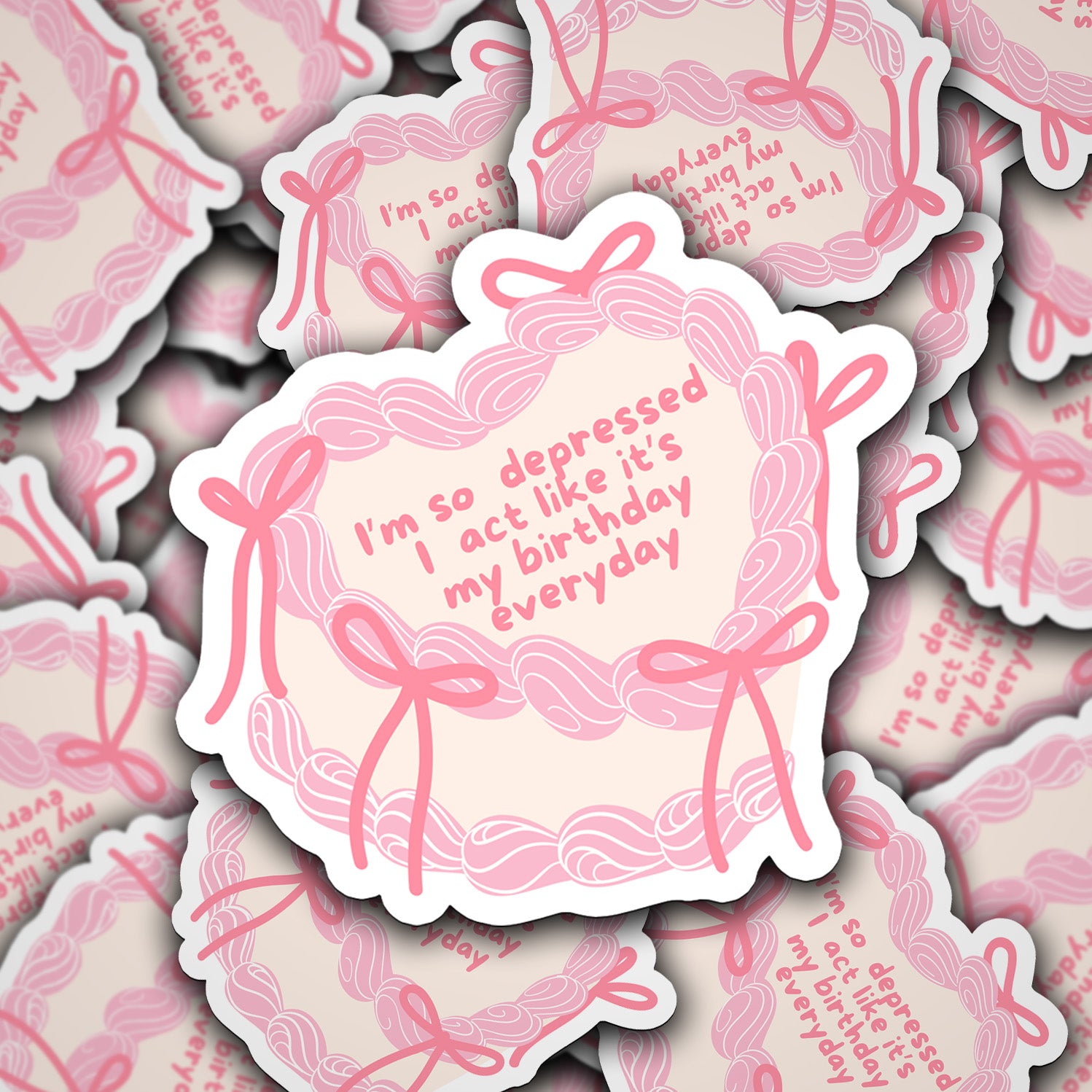 Vinyl Decal I'm So Depressed I Act Like It's My Birthday Everyday